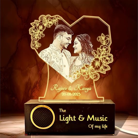 Featuring a sleek design and vibrant LED light, this photo frame is not just visually captivating but also practical. Its built-in Bluetooth speaker enhances the gifting experience, letting you and your partner enjoy your favorite tunes together. An elegant fusion of beauty and usefulness!